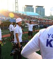 2014.08.27 18: 13양궁 대표팀, 목동구장서 소음 및 관중 적응 훈련