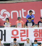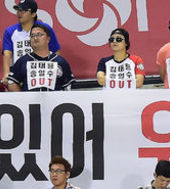 2014.08.27 21: 36두산 단장과 감독의 퇴진을 바라는 팬들과 구단 직원들의 마찰