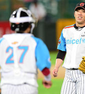 2014.08.28 22: 26염경엽,'재영아, 승리투수 축하한다'