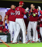 2014.08.28 19: 44KIA 더그아웃,'필 투런포에 싱글벙글~'