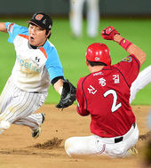 2014.08.28 21: 47멋진 수비 펼치는 황재균,'1루 어림없어'