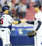 이용찬-양의지,'힘들게 승리 지켜냈어'