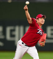 2014.08.28 19: 01서건장을 상대로 힘차게 공을 던지는 정대훈