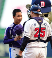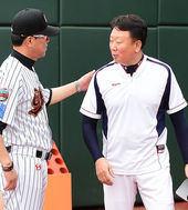 2014.08.28 16: 30인사 나누는 김시진-선동렬 감독,'승부는 잠시 잊고~'