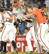 2014.08.29 23: 20정범모,'끝내기 밀어내기에 물벼락 쯤이야!