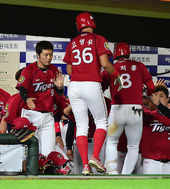 2014.08.29 21: 07KIA 더그아웃,'안치홍 투런포 좋아요~'