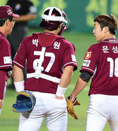 2014.08.31 20: 06넥센 더그아웃,'호투 펼친 문성현 맞이하며'