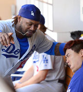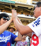 2014.09.01 08: 12다저스 남성팬,'류현진 어머니 사인 부탁드려요'
