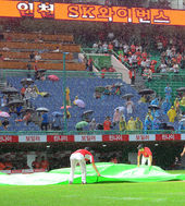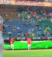 2014.09.02 22: 21'폭우로 방수포 덮히는 문학구장'