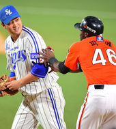 채태인-나바로,'피에! 아웃 맞다니까'