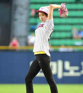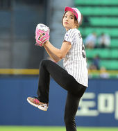 2014.09.04 18: 35시구하는 정다혜,'여자 야구선수같네~'