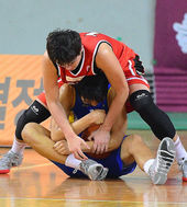 2014.09.04 14: 19안영준-강상재,'루즈볼 다툼 결승전만큼 치열하네'