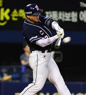 2014.09.05 19: 072루타 날리는 홍성흔,'높은 공 놓치지 않아'