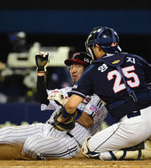 2014.09.05 19: 17정성훈 홈 쇄도 막아낸 양의지,'딱 걸렸어요'