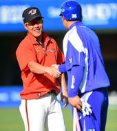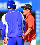 2014.09.05 16: 34정근우,'승엽이형! 훈련 그만하시고 밀담 좀...'