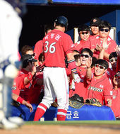 2014.09.06 17: 29SK 더그아웃,'정상호 만루포에 싱글벙글~'