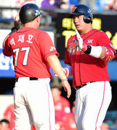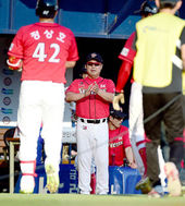 2014.09.06 17: 30정상호 만루홈런 맞이하는 이만수 감독,'제군들, 환영한다'