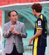 2014.09.06 18: 18김동섭과 이야기 나누는 김학범 감독