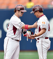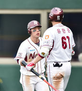2014.09.07 16: 27박병호,'심재학 코치 가슴에 하이파이브!'