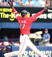 2014.09.07 16: 27두 팔 번쩍 든 김상현,'맞는 순간 만루포 직감!'