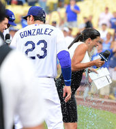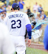 2014.09.08 08: 41연타석 3점포 곤잘레스, 축하 물세례에 당했다