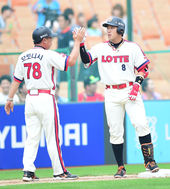 2014.09.10 14: 35전준우,'언제해도 기분좋은 하이파이브'
