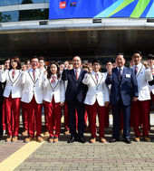2014.09.11 15: 05대한민국 선수단 결단식 참석한 남현희-양학선
