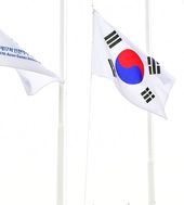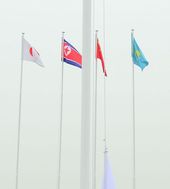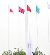 2014.09.12 12: 35게양대에 함께 게양된 태극기-인공기