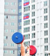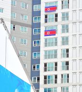 2014.09.12 12: 33인공기 내걸린 북한선수단 숙소