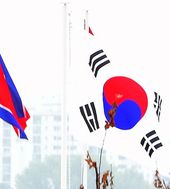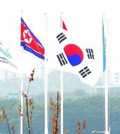 2014.09.12 18: 50인천 하늘에 나란히 게양된 태극기-인공기