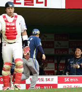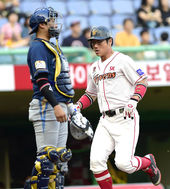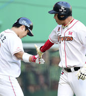 2014.09.13 17: 46선취점 SK, '홈 밟는 김강민'