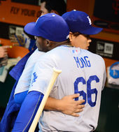 2014.09.13 13: 20포옹하며 서로 격려하는 류현진-푸이그