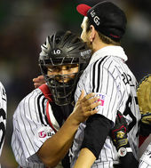2014.09.13 20: 17리오단 품에 안긴 최경철,'멋진 투구 고마워'
