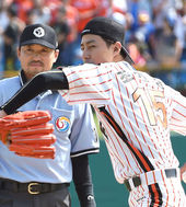 2014.09.14 17: 42시구하는 조인성,'포수 글러브 뚫어지겠네'
