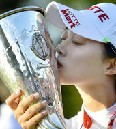 2014.09.15 09: 09우승컵에 키스하는 에비앙 챔피언십 우승자 김효주