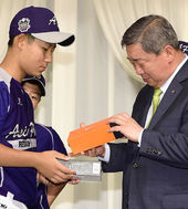2014.09.16 18: 55AG야구대표팀-리틀야구단,'우승 기원 담아'