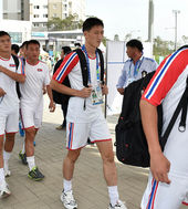 2014.09.16 16: 32훈련장 향하는 북한 남자 축구 대표팀