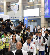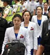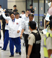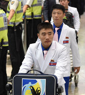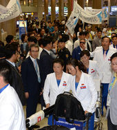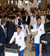 2014.09.16 21: 04인천 공항 도착한 북한 선수단,'반갑습니다'