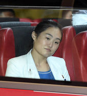 2014.09.16 21: 09창 밖을 바라보는 북한 여자 선수