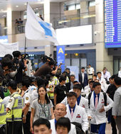 2014.09.16 20: 42북한 선수단 2진 인천국제공항 통해 입국