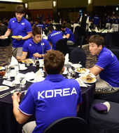 2014.09.16 19: 08리틀야구단-AG야구대표팀,'맛있게 먹고 힘냅시다!'