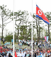 2014.09.18 11: 09선수촌에 게양되는 인공기