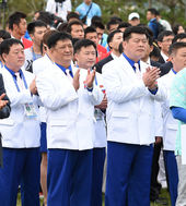 2014.09.18 11: 12환영사에 박수 치는 북한 김병식 단장