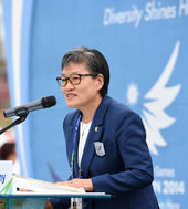 2014.09.18 11: 10환영사하는 이에리사 선수촌장