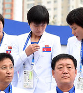 2014.09.18 11: 17북한 女 선수의 수줍은 미소
