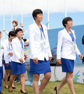 2014.09.18 11: 14긴장한 표정의 북한 선수단