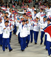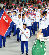 2014.09.19 21: 35북한 선수단,'인공기 흔들며 인천 아시안게임 입장'