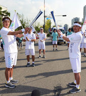 2014.09.19 16: 07김광현,'왼팔 보호차 오른손으로 성화봉송'