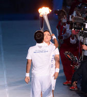 2014.09.19 22: 37'국민타자' 이승엽,'한국 선수단 환영받으며 성화봉송'