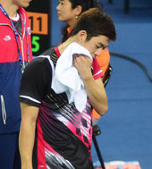2014.09.20 15: 06이용대,'매치 승리 후 닦는 땀'